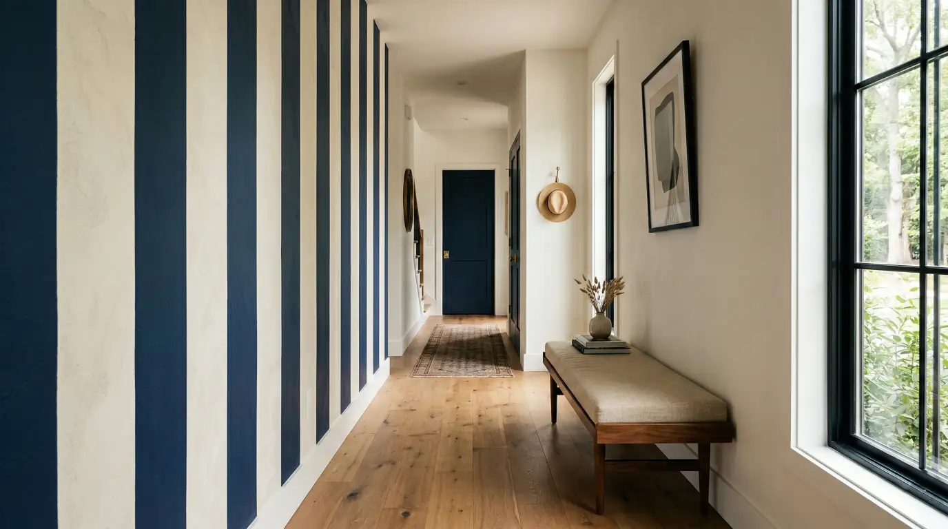 - Hallways or transitional spaces where horizontal stripes can visually widen the passage.