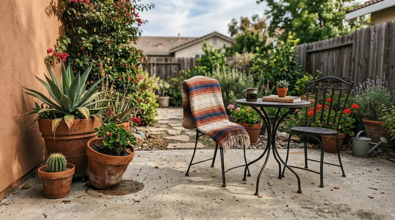 The plants most associated with this look, agave, succulents, and ornamental grasses, do thrive in dry climates. But the aesthetic itself travels. If you are in a humid Southern state or the Pacific Northwest, you adapt the plant palette while keeping all the other design elements. The terracotta still works. The wrought iron still works. The textiles still work.