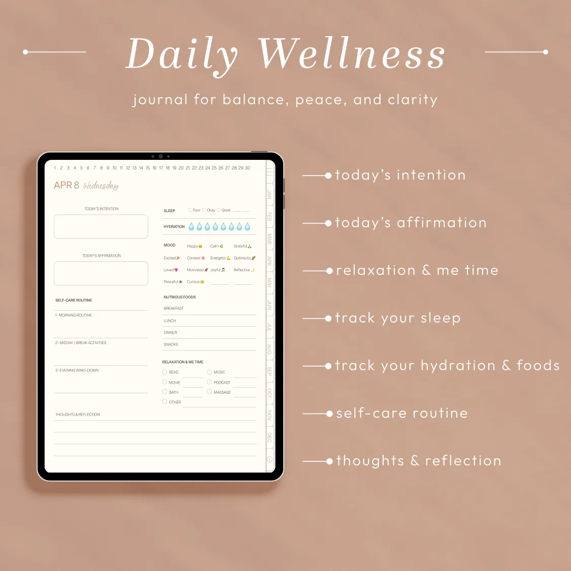 Stay balanced and mindful in 2026 with the Digital Wellness Journal. Featuring dated daily wellness pages, reflection prompts, fitness and self-care templates, and gratitude trackers, this journal is designed to help you prioritize your health and well-being. Perfect for iPad, tablets, and popular note-taking apps.