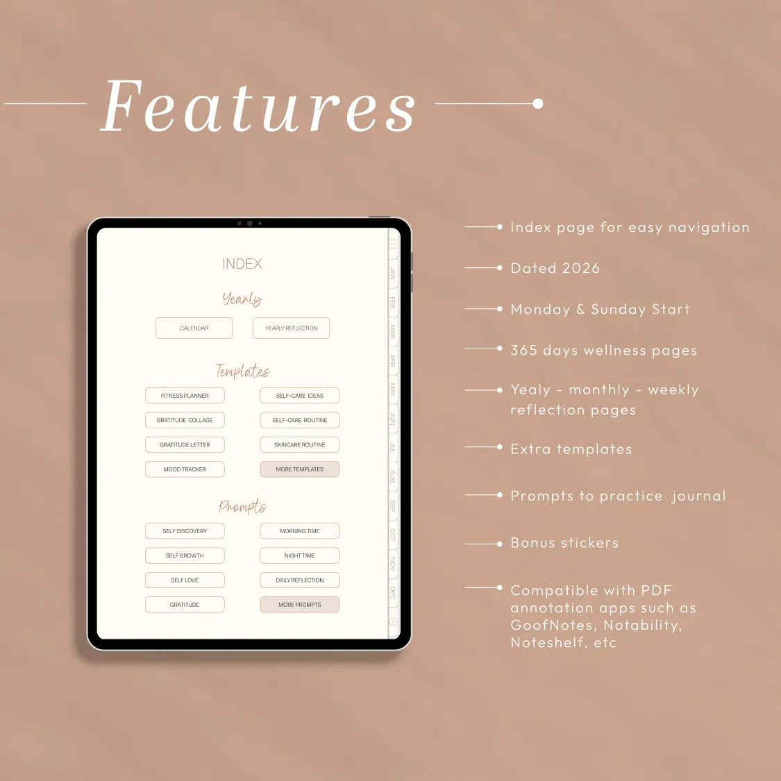 2026 Digital Wellness Journal – Daily Self-Care, Fitness & Reflection Planner